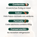 - 12 Salchichas de Pollo fresco con verduras de 450g cada una.