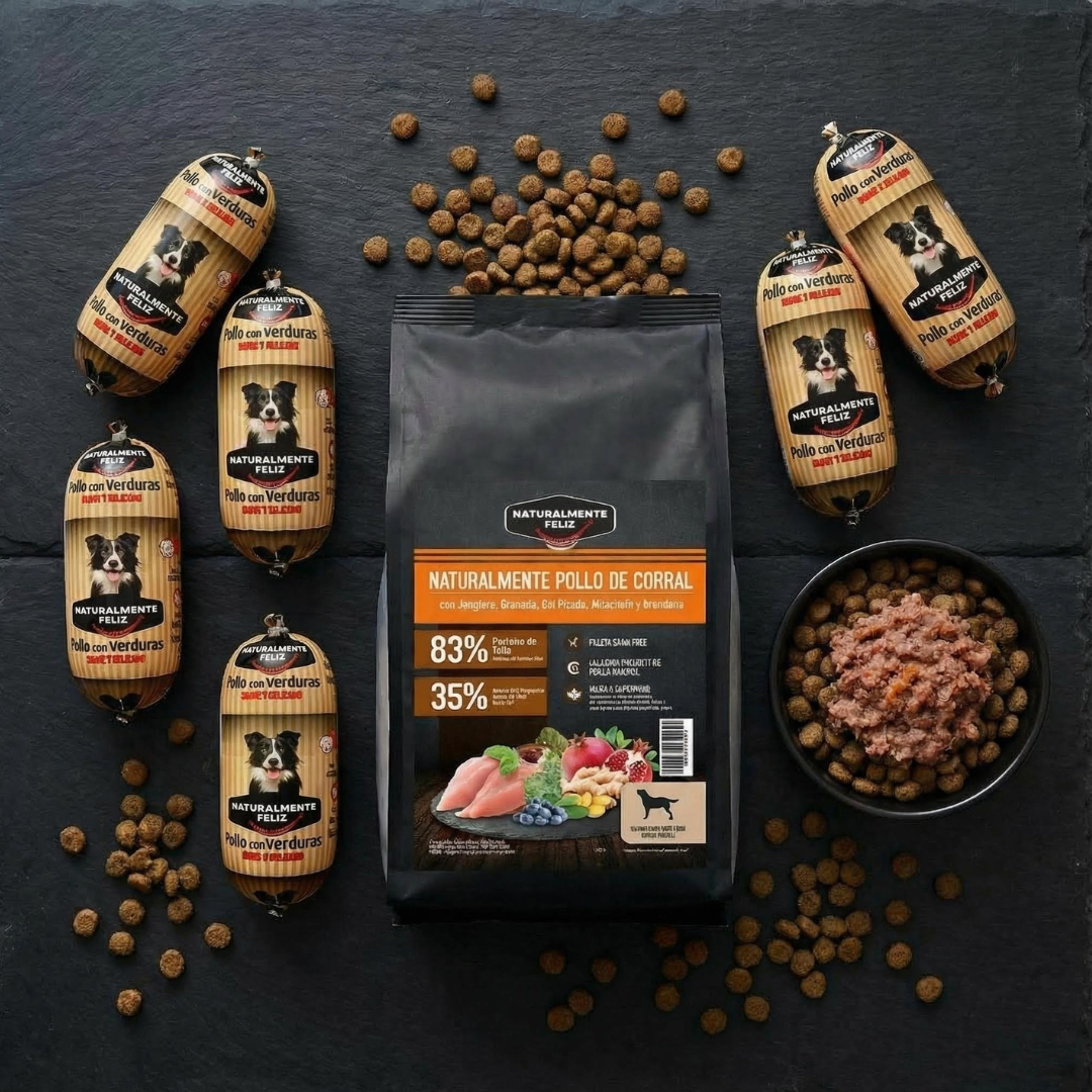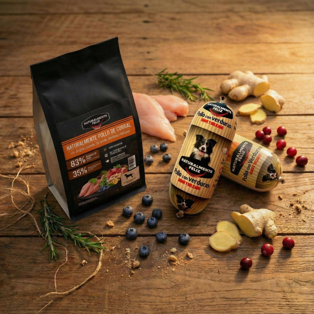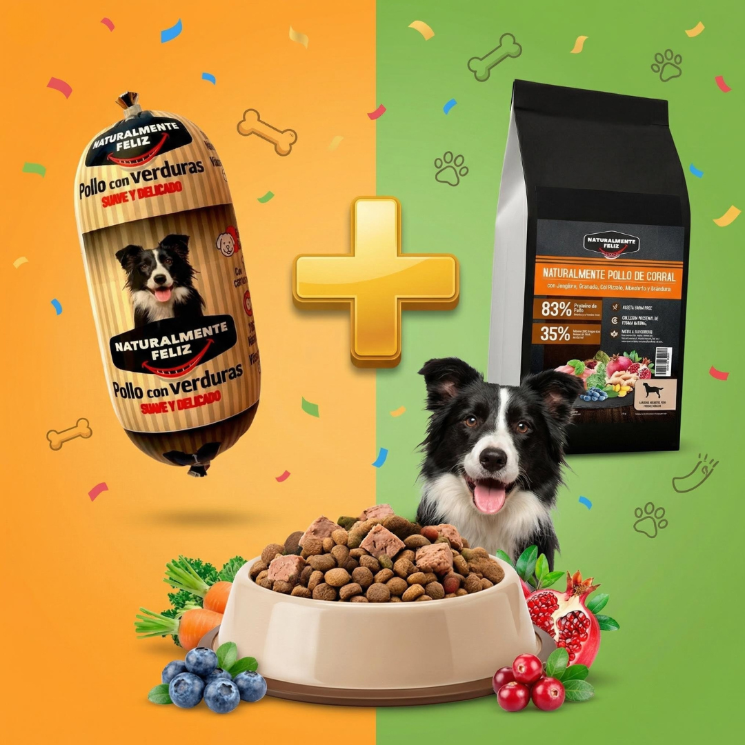 🐶 Salchicha Natural + Pienso de Pollo de Corral para una nutrición completa, sabrosa y funcional.